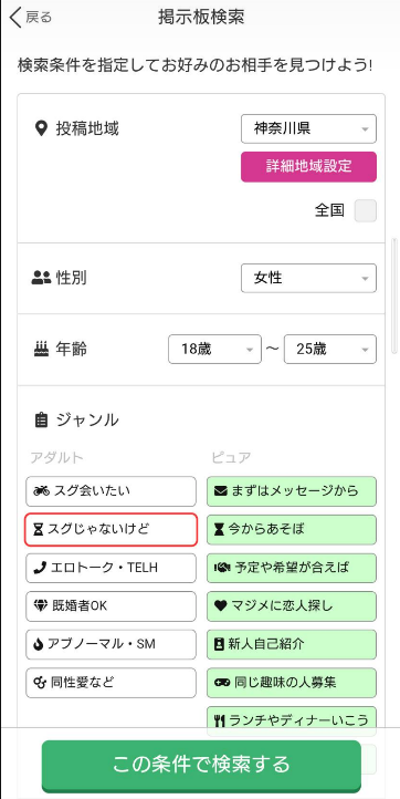 - 「すぐ会える」「アダルトOK」が明確に分かれてるのが楽