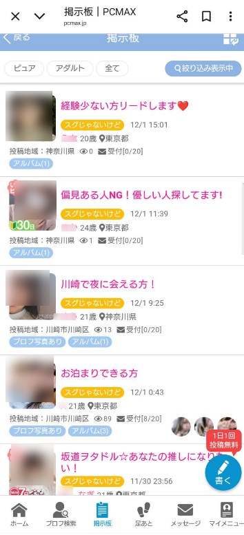 PCMAXでは投稿ブログの内容を無料で閲覧できます。